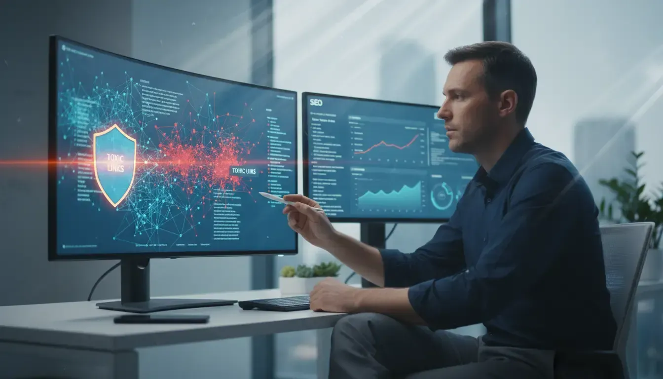 Backlinks tóxicos prejudicam sua autoridade de domínio. Aprenda quando e como usar a ferramenta disavow links do Google para proteger seu SEO e ranking.